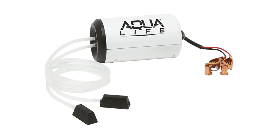 Frabill’s Aqua-Life® aerator systems have been specifically designed and tested to keep baitfish healthy and active. This portable aerator converts up to a 50-gallon cooler or livewell into an oxygen-rich aquarium. Operation is whisper quiet – so quiet you’ll barely know it’s on. The system also uses a specialized micro-bubble oxygen diffuser to produce a tiny cloud of bubbles that won’t disrupt or damage delicate baitfish.