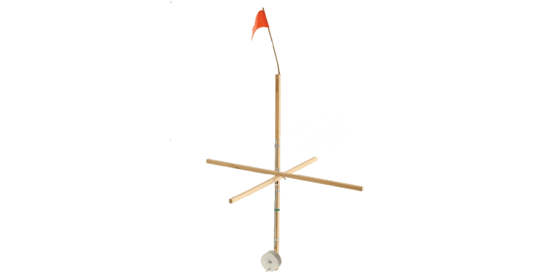 Supersized in both directions, this wood stick tip-up features an extra-long spool shaft and 32-inch tall flag. Far-reaching both above and below, it’s ideal for deep snow.